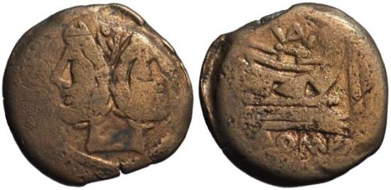Republican Janus & Prow AE As - VALERIUS - 169-158 BC