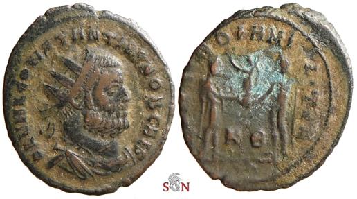 opposite and holding a sceptre, K and officina letter in lower centre.