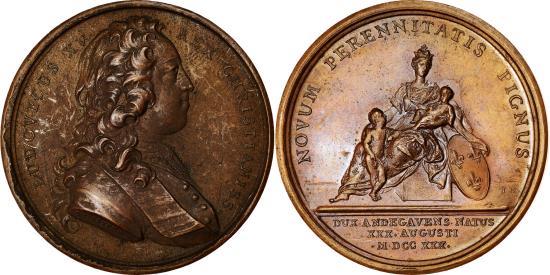 | France, Medal, Louis XV, La Naissance du Duc d'Anjou, History, 1730, Duvivier |
