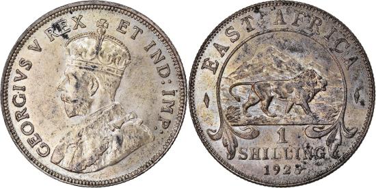 | | Coin, EAST AFRICA, George V, Shilling, 1925, , Silver, KM:21 | | | Bust of King George V left, E.B. MacKennal | | FEATURES |