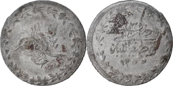 Toughra within wreath, Text, value and date within wreath, Weight varies: 1.35-1.60 grams.
