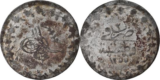 Toughra within wreath, Text, value and date within wreath, Weight varies: 1.35-1.60 grams.