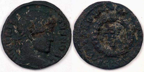 Obv: Laureate and cuirassed bust of Crispus right with the legend IVL CRISPVS NOB C