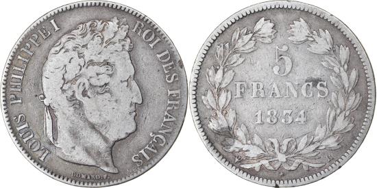 | | Coin, France, Louis-Philippe, 5 Francs, 1834, La Rochelle, , Silver | | | Louis-Philippe, Laureate head right, Mint marks at edge outside wreath | | FEATURES |