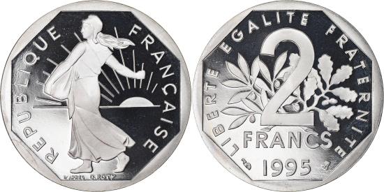 | | Coin, France, Semeuse, 2 Francs, 1995, Paris, Proof, , Nickel, KM:942.2 | | | Semeuse, The Seed Sower, Denomination on branches, date below | | FEATURES |