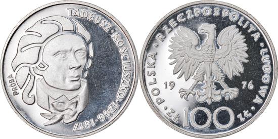 | | Coin, Poland, 100 Zlotych, 1976, Warsaw, ESSAI, , Silver, KM:Pr277 | | | Kosciuszko. | | FEATURES |