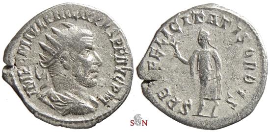 AVG P M, radiate, draped and cuirassed bust right. Rev: SPES FELICITATIS