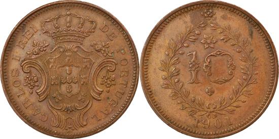 | | Coin, Azores, 10 Reis, 1901, , Copper, KM:17 | | | Crowned arms, Value within wreath, date below | | FEATURES |