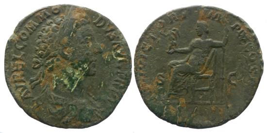 Commodus177-172 Æ Sestertius, Rome, 180. 30 mm - 25.06 g L AVREL COMMODVS AVG TR P V Laureate, draped and cuirassed bust right, seen from behind R/ IOVI VICTORI IMP