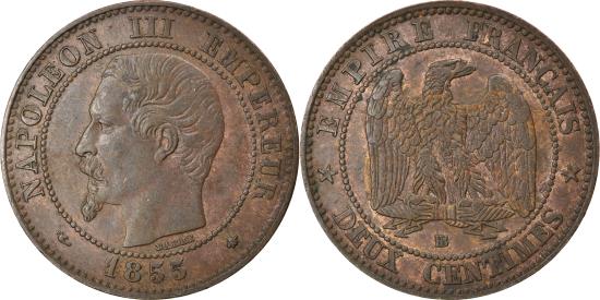 | | Coin, France, Napoleon III, 2 Centimes, 1855, Strasbourg, , KM 776.3 | | | Napoléon III, Head left, Eagle | | FEATURES |