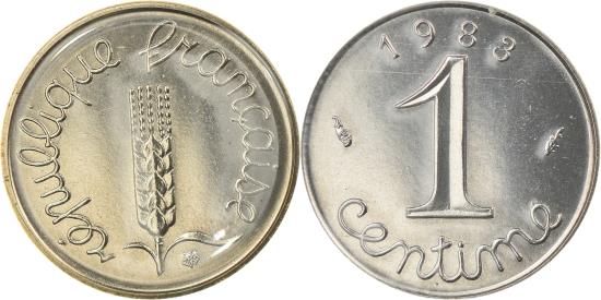 | | Coin, France, Épi, Centime, 1983, Paris, , Stainless Steel, KM:928 | | | Épi, Cursive legend surrounds grain sprig, Cursive denomination, date at top, 1991-1993 dated coins, non-Proof, exist in both coin and medal alignment. Values given here are for medal alignment examples. Pieces struck in coin alignment have been traded for as much as $50.00. | | FEATURES |