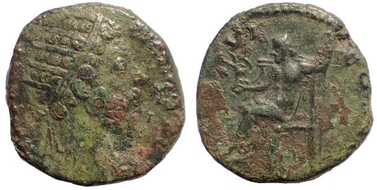 Marcus Aurelius. AD 161-180. Æ Dupondius 23 mm. 10.9 gm. Rome mint. Struck AD 174. Obv: Radiate head right. Rev: Jupiter seated left, holding Victory and scepter. RIC III 1100; MIR 18, 266-8/50.