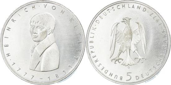 | | Coin, GERMANY - FEDERAL REPUBLIC, 5 Mark, 1977, Karlsruhe, Germany, | | | Eagle above denomination, Bust 3/4 left, dates below | | FEATURES |