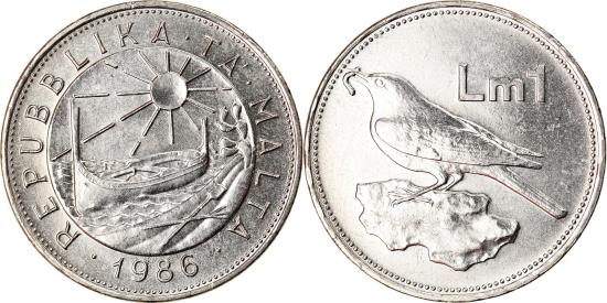 | | Coin, Malta, Lira, 1986, , Nickel, KM:82 | | | Republic emblem within circle, Merill bird and value | | FEATURES |