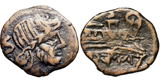 Roman Republic. Ae semis. Spanish contemporary imitation? Circa 100 B.c.