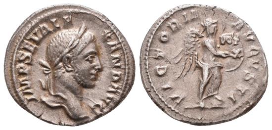 Severus Alexander. AD 222-235. AR Denarius (2,79g). Rome mint. 11th emission, AD 230. Laureate head right / Victory standing right, with foot on helmet, inscribing VOT/X on shield set on knee. RIC IV 219; BMCRE 638-41; RSC 566a. VF.