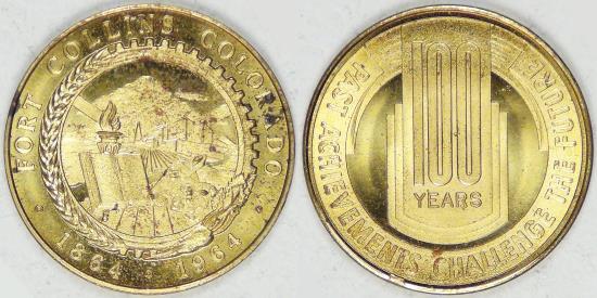 1964 Fort Collins Centennial Medal, Brilliant Uncirculated