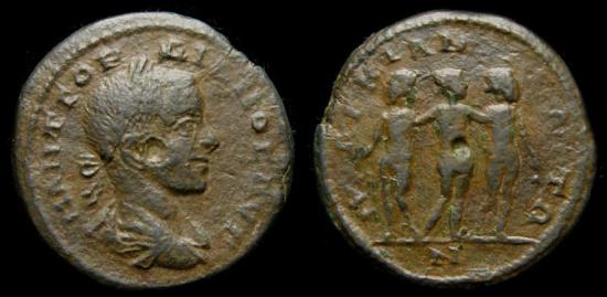 Rev: MAPKIANOΠOΛITωN, The Three Graces.