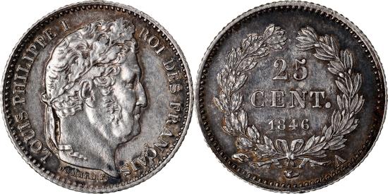 | | Coin, France, Louis-Philippe, 25 Centimes, 1846, Paris, , Silver | | | Louis-Philippe, Laureate head right, Denomination within wreath | | FEATURES |
