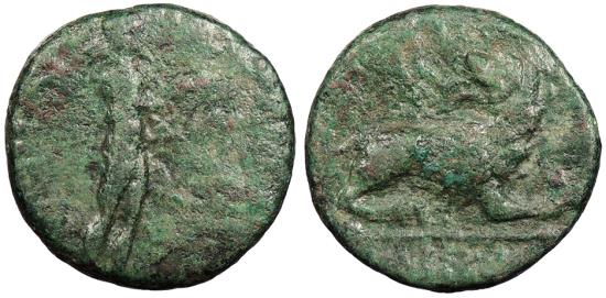 Fairly scarce. Green patina.