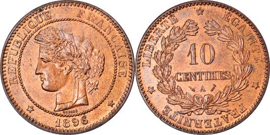 | | Coin, France, Cérès, 10 Centimes, 1896, Paris, , Bronze, KM:815.1 | | | Cérès, Laureate head left, Denomination within wreath | | FEATURES |