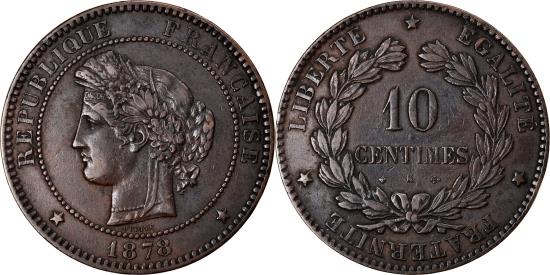 | | Coin, France, Cérès, 10 Centimes, 1878, Bordeaux, , Bronze, KM:815.2 | | | Cérès, Laureate head left, Denomination within wreath | | FEATURES |