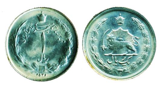 IRAN, PAHLAVI: Muhammad Reza Shah (1320-1357 SH/1941-1979), Copper-Nickel One Rial ( 18 mm), dated MS 2536 (1977), KM#1171a Brilliant UNC. the coin is better than image!
