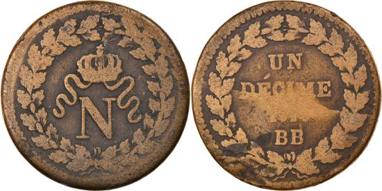 | | Coin, France, Napoleon I, Decime, 1814, Strasbourg, , Bronze | | | Small date | | FEATURES |