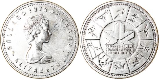 | | Coin, Canada, Elizabeth II, Dollar, 1978, Royal Canadian Mint, Ottawa | | | Young bust right, Commonwealth games, logo at center | | FEATURES |