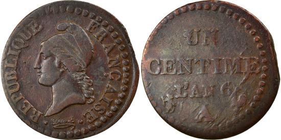 | | Coin, France, Dupré, Centime, AN 6, Paris, , Bronze, KM:646 | | | Dupré, Liberty head left, Value within beaded circle, REPUBLIQUE FRANCAISE <Bullet> | | FEATURES |