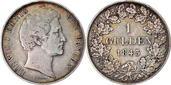 | | #[877355] COIN, GERMAN STATES, BAVARIA, LUDWIG I, GULDEN, 1843, , SILVER, KM:788 | | | Head right | | Denomination above date within wreath | | LUDWIG I KOENIG VON BAYERN | | Prev. KM#414. | | CHARACTERISTICS |