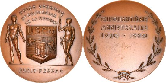 | France, Medal, Union Sportive et Culturelle de la Monnaie, 50 Ans, 1980 |
