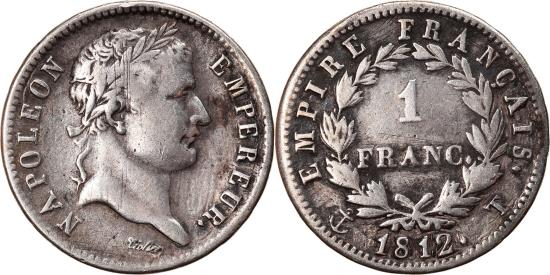 | | Coin, France, Napoléon I, Franc, 1812, Nantes, , Silver, KM:692.14 | | | Napoléon I, Laureate head right, Denomination within wreath | | FEATURES |