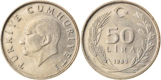 | | #[885708] COIN, TURKEY, 50 LIRA, 1985, , COPPER-NICKEL-ZINC, KM:966 | | | Head of Atat | | Value and date within wreath | | Varieties exist. | | CHARACTERISTICS |