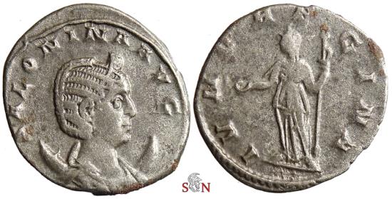 Obv: SALONINA AVG, Diademed and draped bust right on crescent.