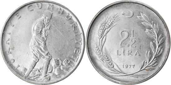 | Coin, Turkey, 2-1/2 Lira, 1977, , Stainless Steel, KM:893.2 |