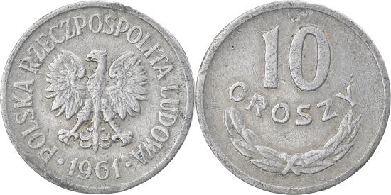 | Coin, Poland, 10 Groszy, 1961, Warsaw, , Aluminum, KM:AA47 |