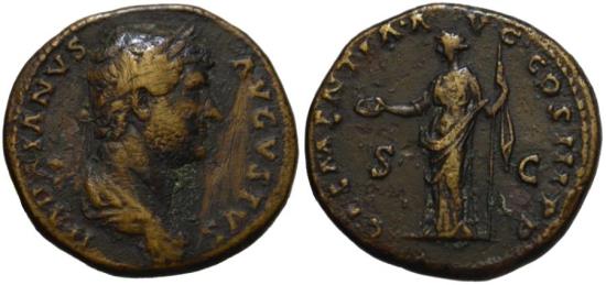 Hadrian AE dupondius - CLEMENTIA - attractive 132-134 AD