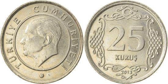 Coin, Turkey, 25 Kurus, 2013, , Copper-Nickel-Zinc
