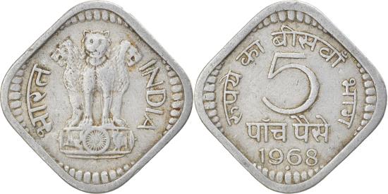 | | Coin, INDIA-REPUBLIC, 5 Paise, 1968, , Aluminum, KM:18.2 | | | Asoka lion pedestal, Denomination and date, 7mm 5., Type 1. | | FEATURES |