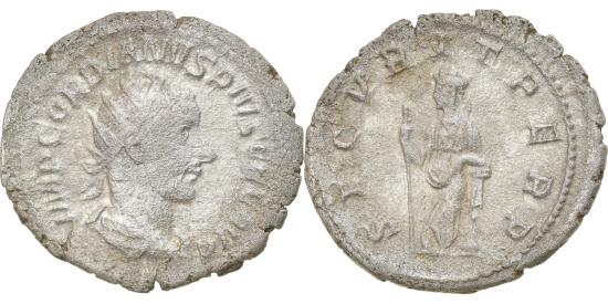 | | Coin, Gordian III, Antoninianus, 244, Roma, , Billon, RIC:151 | | | IMP GORDIANVS PIVS FEL AVG, SECVRIT PERP | | FEATURES |