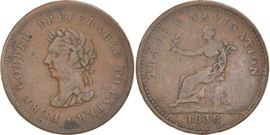 | | Coin, Canada, George IV, Penny Token, 1838, , Copper | | | TRADE & NAVIGATION | | FEATURES |