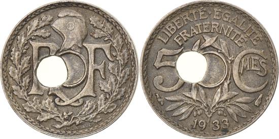 | | Coin, France, Lindauer, 5 Centimes, 1933, Paris, Trou Décentré, | | | Lindauer, Monogram divided by center hole, liberty cap above, wreath surrounds, Denomination divided by plant and center hole, date below | | FEATURES |