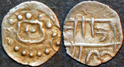 INDIA, KALACHURI feudatory, Jagapala AR 2-rattis (or 1/4 masha). RARE & CHOICE!