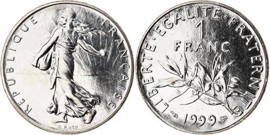 | | #[825829] COIN, FRANCE, SEMEUSE, FRANC, 1999, PARIS, , NICKEL, KM:925.1 | | | Semeuse | | The Seed Sower | | Laurel branch divides denomination and date | | Louis Oscar Roty | | Without mint mark. | | CHARACTERISTICS |