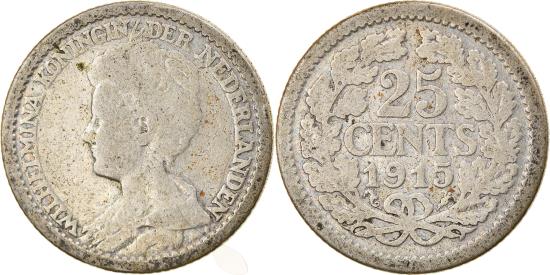 | | Coin, Netherlands, Wilhelmina I, 25 Cents, 1915, , Silver, KM:146 | | | Bust left, legend, Value within wreath | | FEATURES |