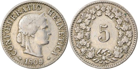 | Coin, Switzerland, 5 Rappen, 1909, Bern, , Copper-nickel, KM:26 |