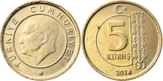 | Coin, Turkey, 5 Kurus, 2014, , Brass, KM:1240 |