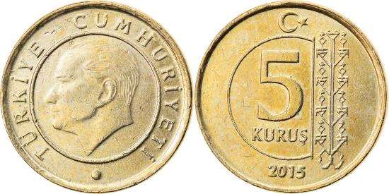 | Coin, Turkey, 5 Kurus, 2015, , Brass, KM:1240 |