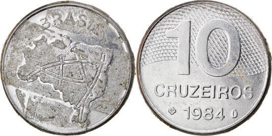| | #[748642] COIN, BRAZIL, 10 CRUZEIROS, 1984, , STAINLESS STEEL, KM:592.1 | | | Map of Brazil | | Denomination, value, date, linear design | | CHARACTERISTICS |